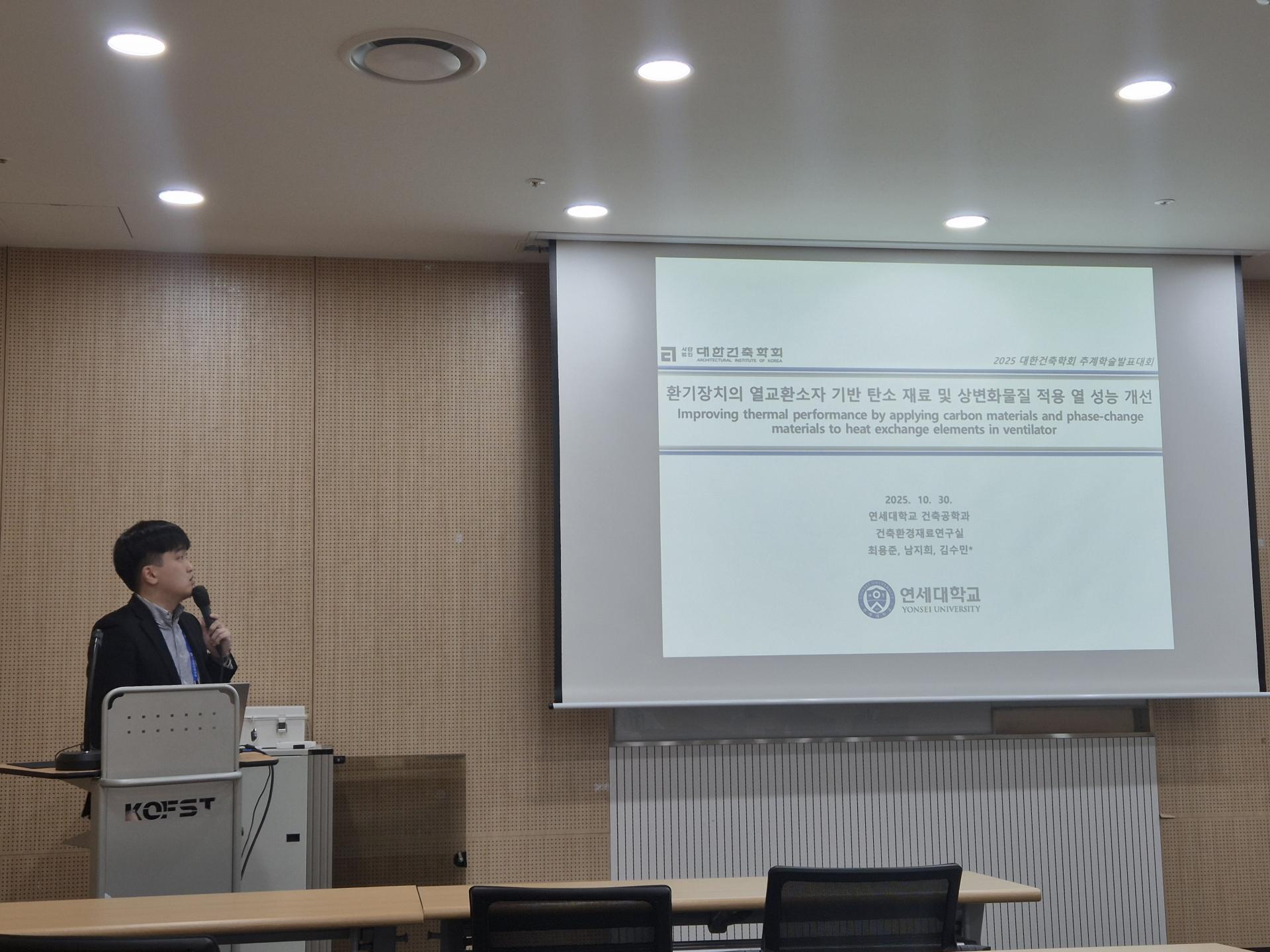 연구실 김영욱 박사님, 남지희, 최용준, 서원덕, 최환호, 조현미, 정재혁 연구원이 2025년도 대한건축학회 추계학술발표대회애 참석하였습니다.