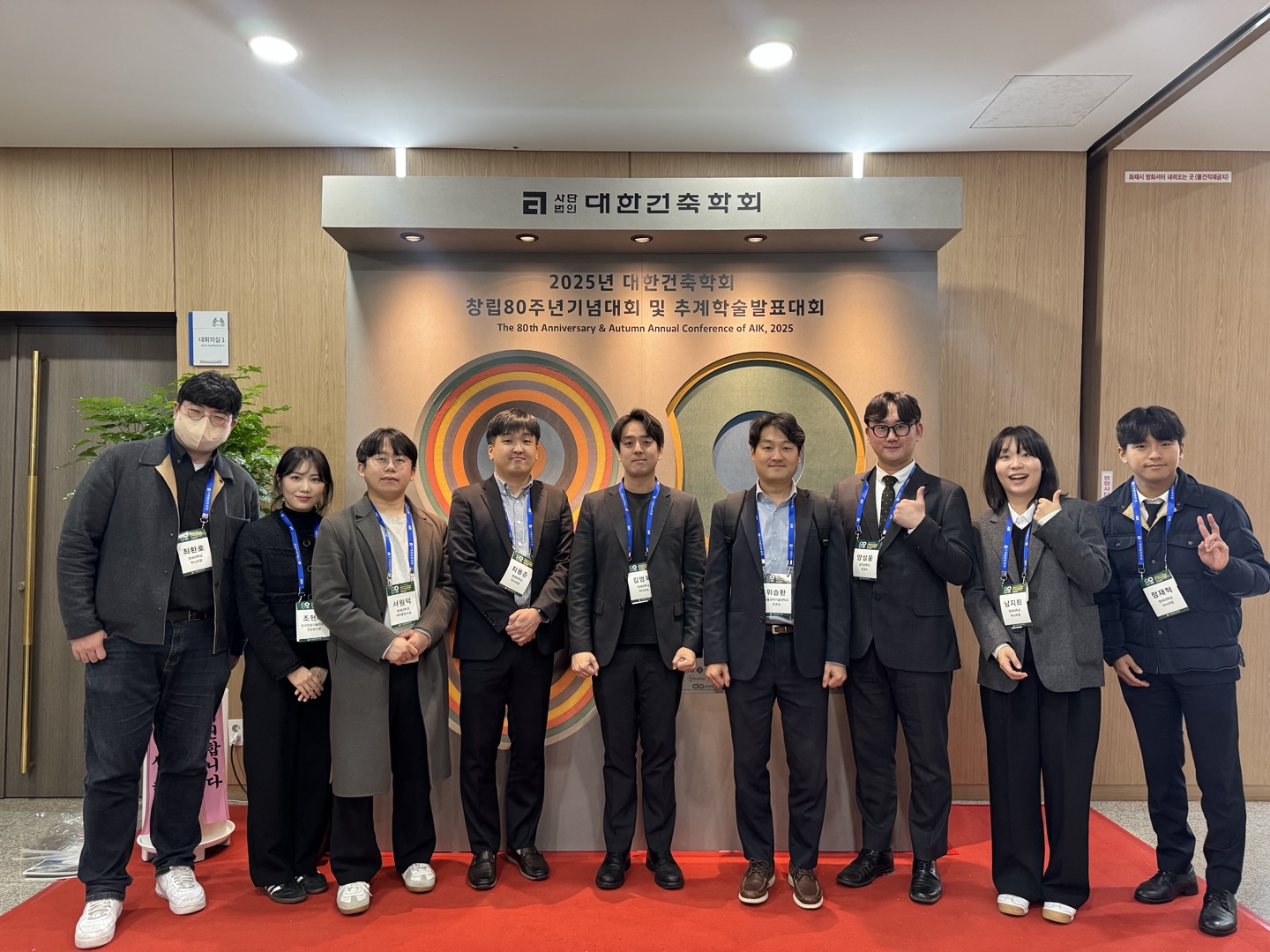 이번 학술대회는 대한건축학회 창립 80주년을 기념하는 의미를 더해 개최된 만큼, 다양한 세션과 특별 기념행사들이 함께 진행되며 국내 건축 분야의 학문적 흐름과 연구 동향을 폭넓게 공유할 수 있는 자리였습니다. 특히 학회 현장에서는 연구실의 졸업생 선배님이신 위승환 교수님과 양성웅 교수님을 만나뵙고, 연구에 대한 조언과 격려의 말씀을 들을 수 있는 뜻깊은 시간을 가졌습니다.
